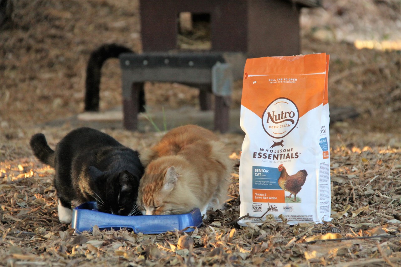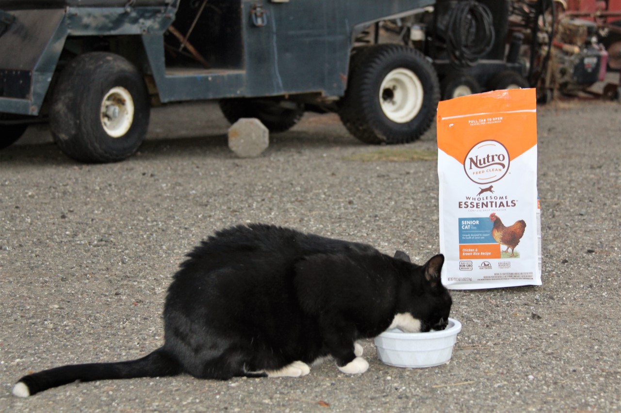 Many of our kitties are starting to get older – they are between 8-10 yrs old, so we have made a few changes to their diet. The campus cats have had their food upgraded, and we decided to switch their food to a high-quality ‘senior blend.’ After much research and taste testing, we decided on Nutro brand cat food. We feed them Senior formula Chicken and Brown Rice!