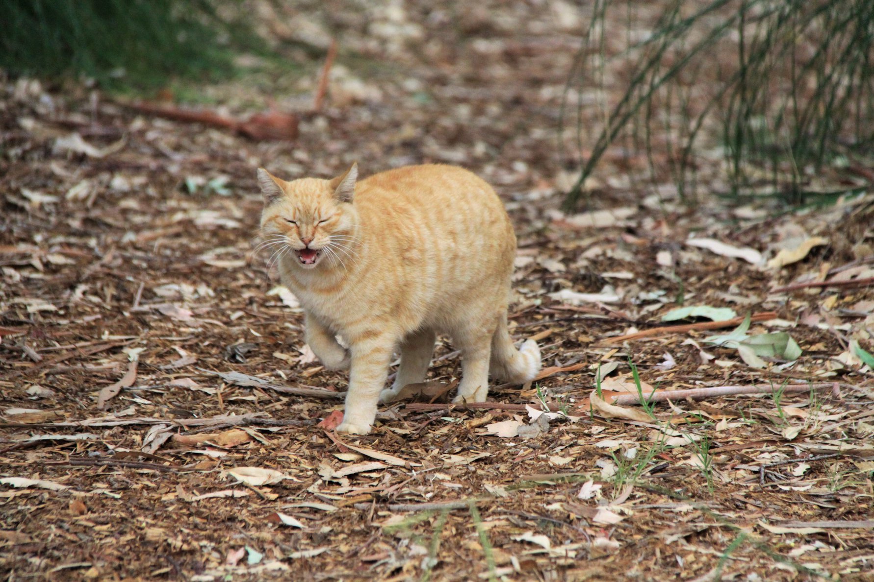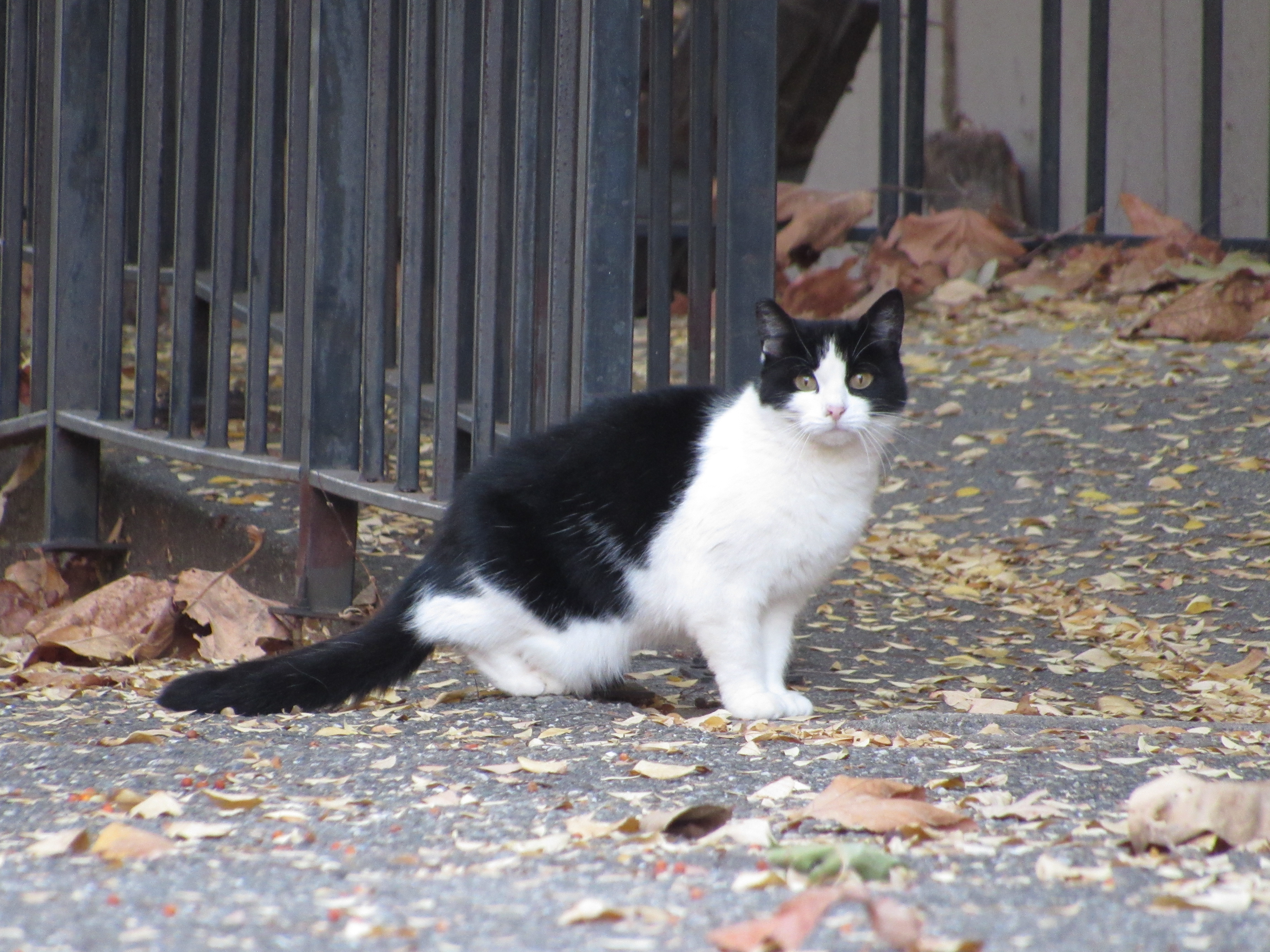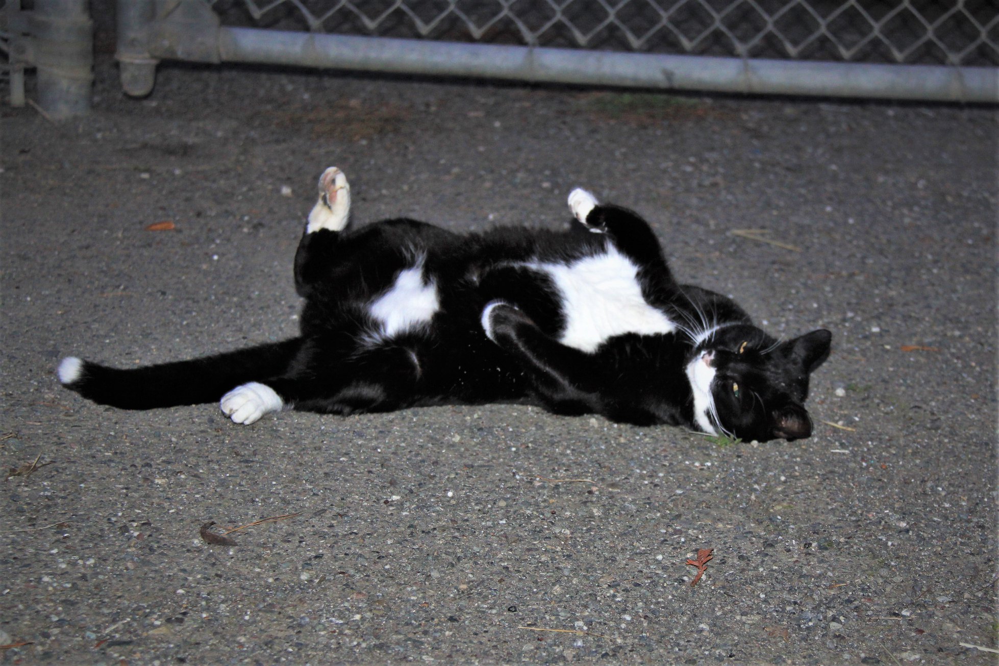 Once we get through the gates to his station, he arches his back and rubs himself on our legs. He will do it a couple of times until you cannot resist and pet him. This move is a TRAP!! Once you get the pet in, he will give you a swat with his paw; if you decide to go for the pet one more time; then, he gives you a nip. No worries, we were all warned about his game (pet-swat-bite), so we all are aware and commence evasive maneuvers once we get our pet.