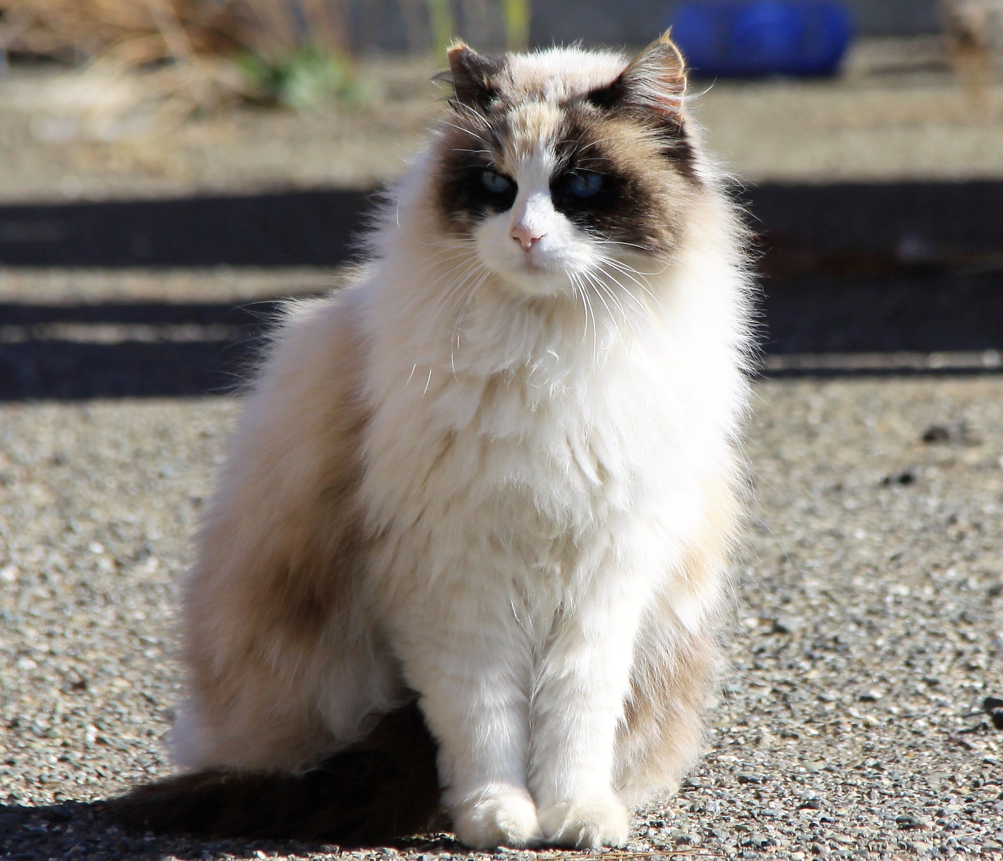 It’s been a while since we have seen these three show up for breakfast. Once in a blue moon, we will get to see one of them, and twice we have seen Gracie and Handsome together. Many times when we post a picture of them on Facebook, people ask who they are? and mention that they have not seen them before, so today, we will share a little bit about this beautiful trio of kitties.