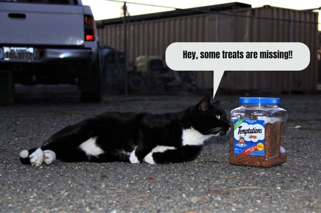 Our kitties love their temptations treats! We have noticed some of the more elusive cats are coming out and even getting near our volunteers to get some Temptations treats. Mama Kitty, who used to show up once a month, has been showing up consistently. Mean Mommy, our standoffish kitty, even allowed one of our volunteers to pet her. Jasper, another elusive kitty, has also been showing up for breakfast and even checks his little shelter for treats. Now, these changes could be a result of our wonderful volunteers, but the pictures do not lie; Our cats love their treats!
