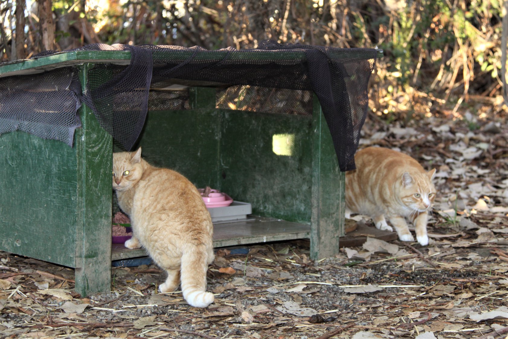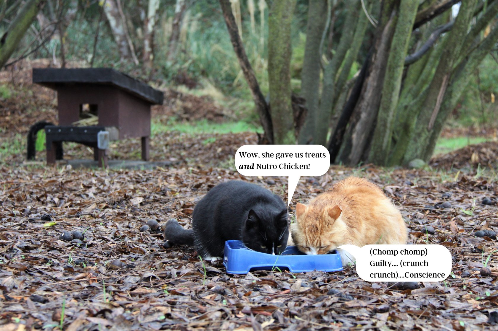 Disclaimer: Our commitment is to not have food in low feeders after we feed unless we are specifically video taping – if we are taping, we do put out some food to see which campus cats come by that station.