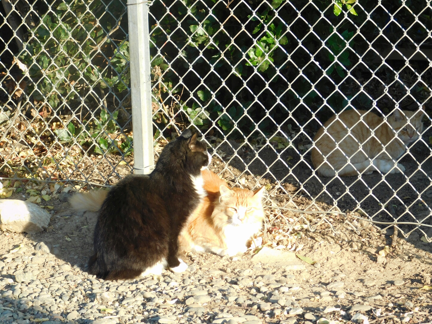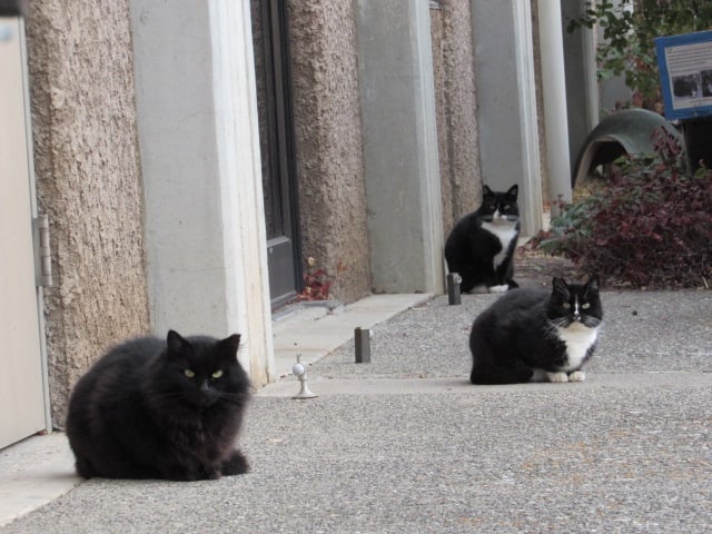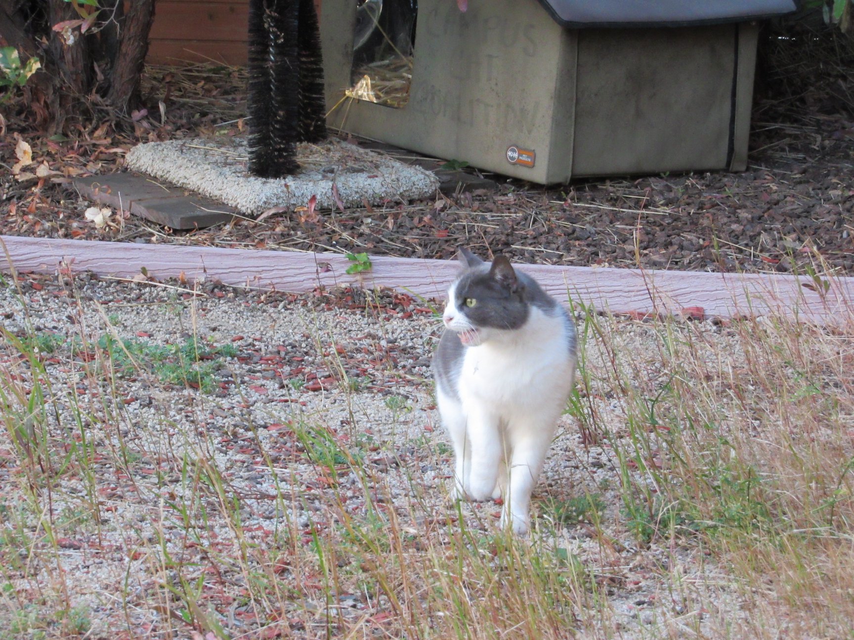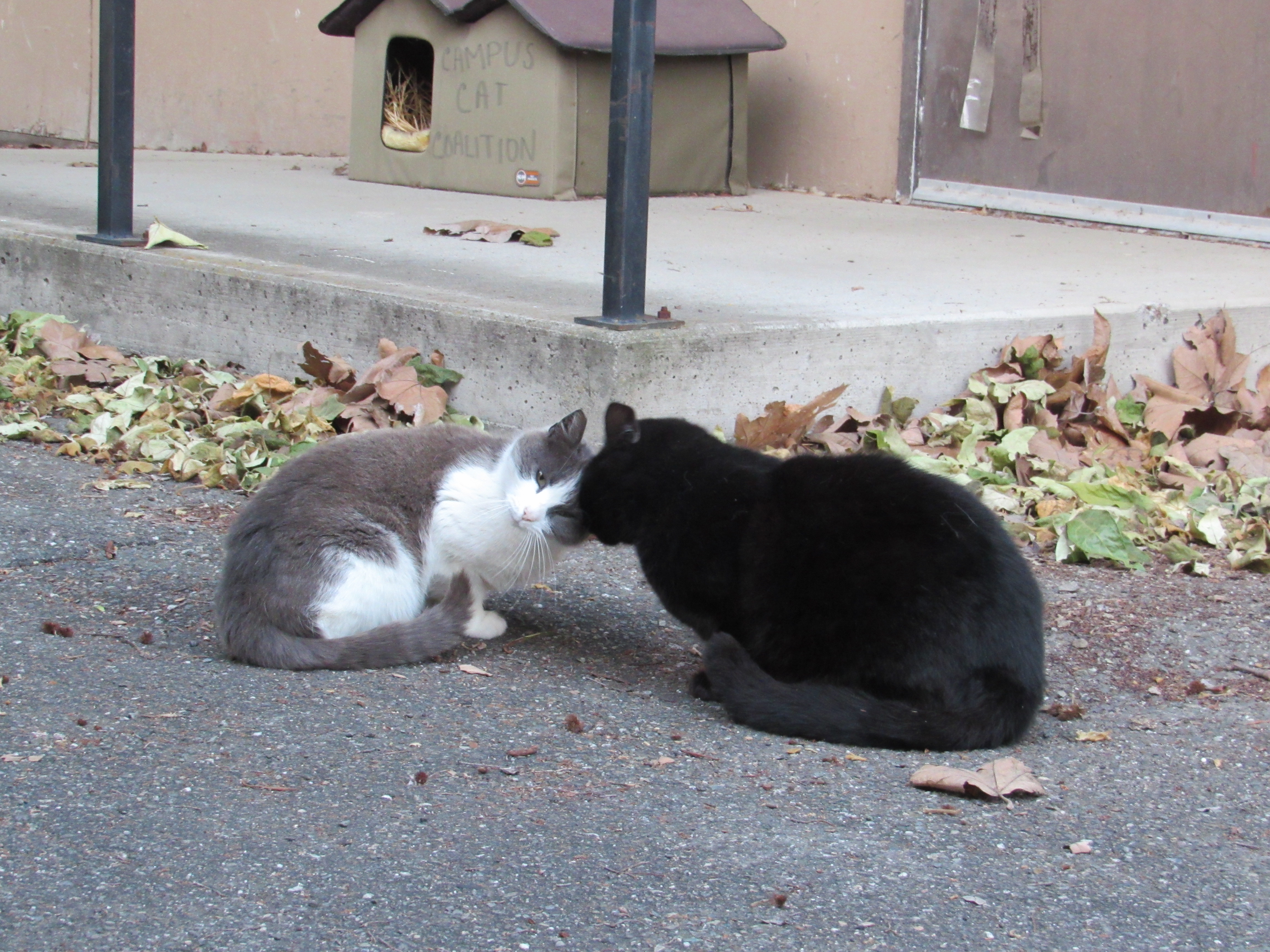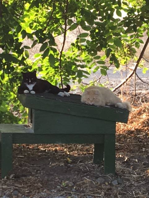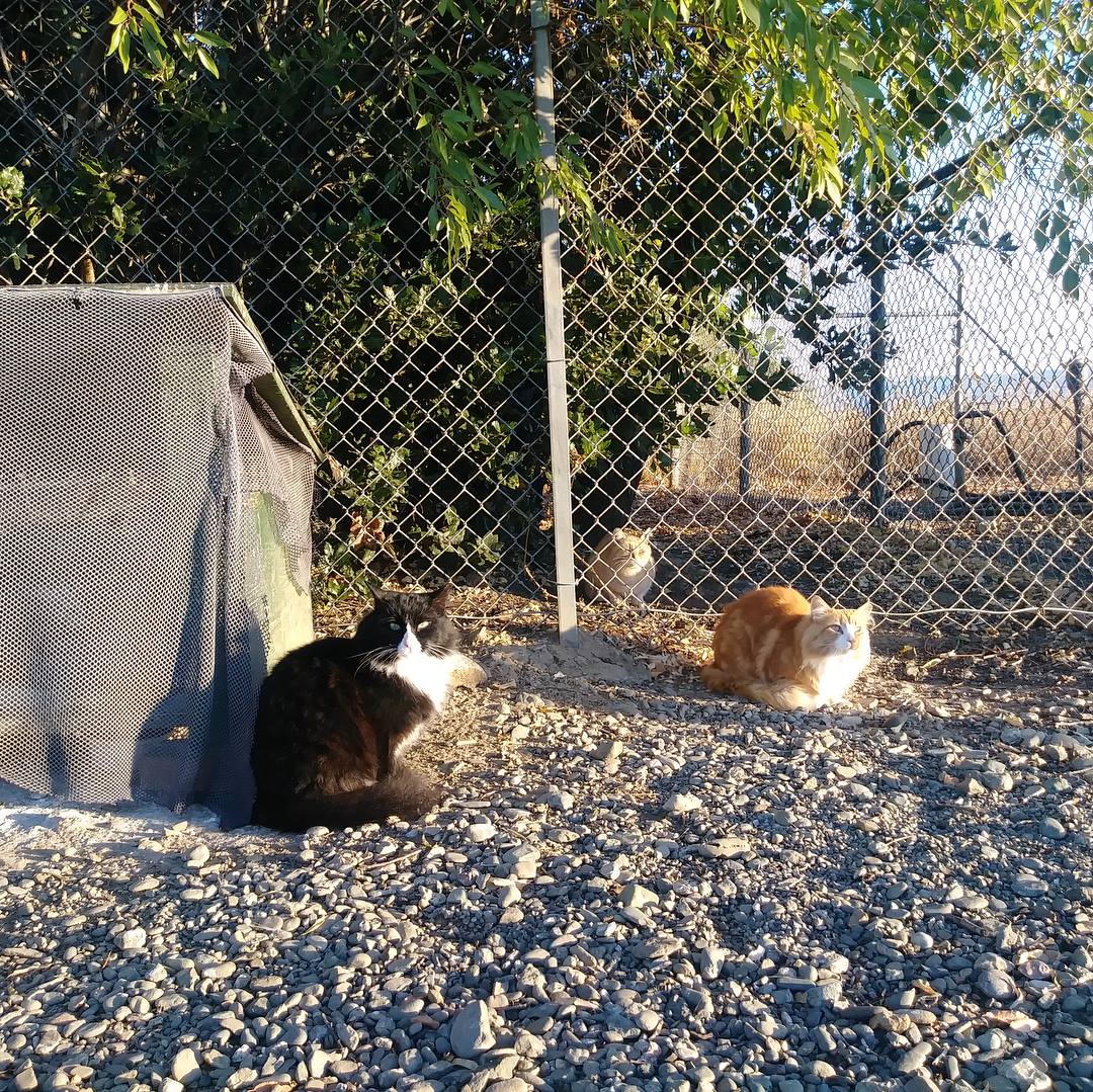 When we got the call that they were going to tear down the portables, Two of our volunteers trapped Gracie and Handsome to keep them safe. Losing the portables, their home, really rocked their world. Grandma and Blackie moved on to another station, and we are lucky to have them greet us every morning. But Gracie, Handsome, and Princess moved around campus. As of today, we know where Handsome and Princess reside. We do not see them every day, but we have wonderful volunteers who set out trail cams to check on them. Gracie is still unwilling to let go of her old home. So she is all over the place at the moment. We are hoping that soon she will settle down with her brother and best friend, Handsome.