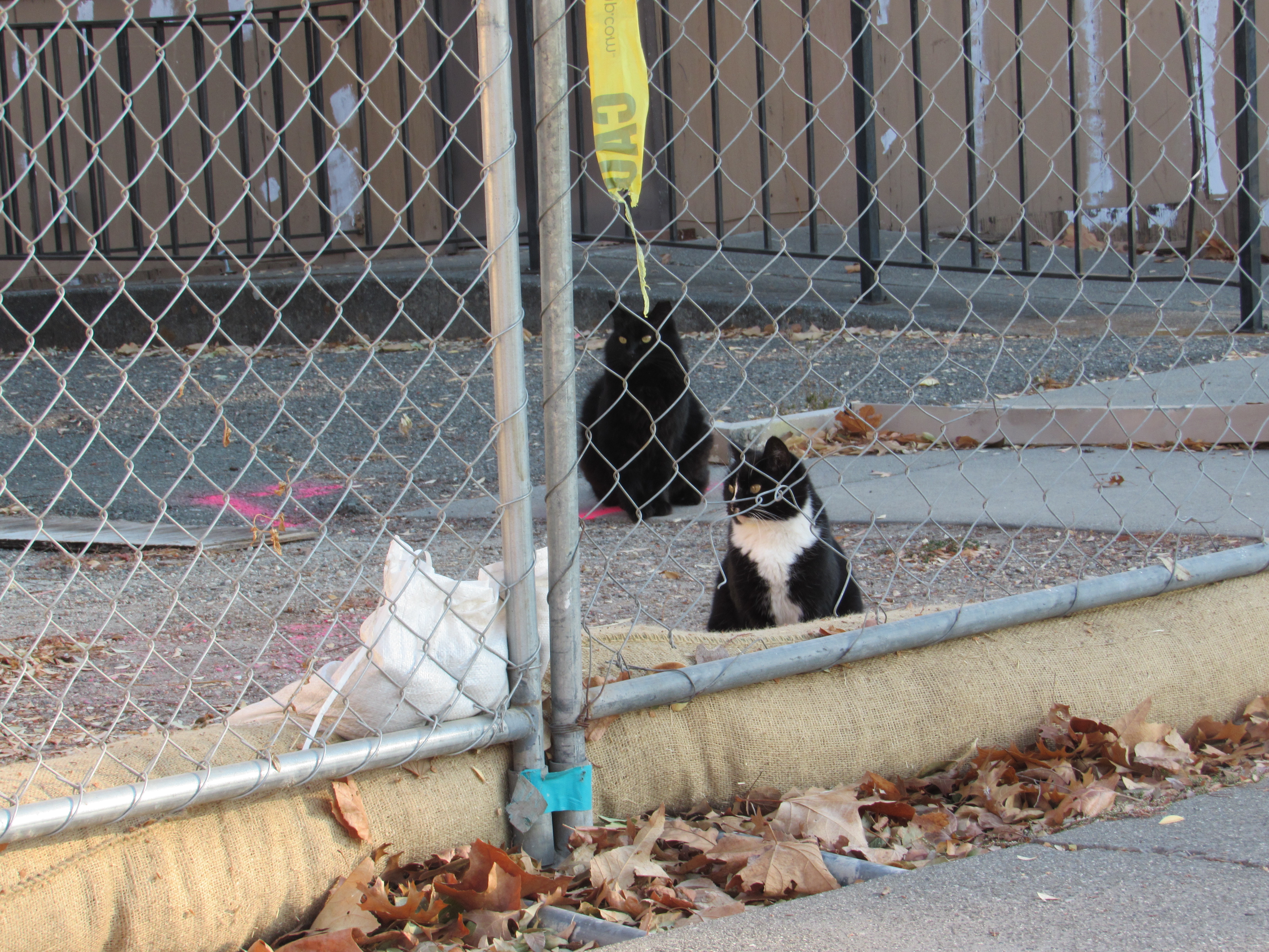 The morning that they were tearing down the portables, two volunteers and I woke up early to lure Grandma and Blackie out of the portables. Then we had the task of keeping these feral kitties entertained long enough for the construction workers to demolish the portables. That was a difficult task. The construction crew was going to tear down the building at 6 am, but as we all know, construction does not go as plan, so they began a bit later. Blackie and Grandma got tired of us and ran for the portables. We begged the construction workers to let us go home and get an air horn to scare the kitties out of the portable. The construction crew was so kind and patient, and they allowed us to get our air horn. My heart was racing and, all I could think about was that I was glad Blackie was with Grandma. Protecting her and making sure she was okay during this time. We blew the horn, and Blackie ran out. We did not see Grandma, and the construction crew began tearing down the portables. My heart sank. I thought we had lost her, but two days later, one of our volunteers saw her at night.